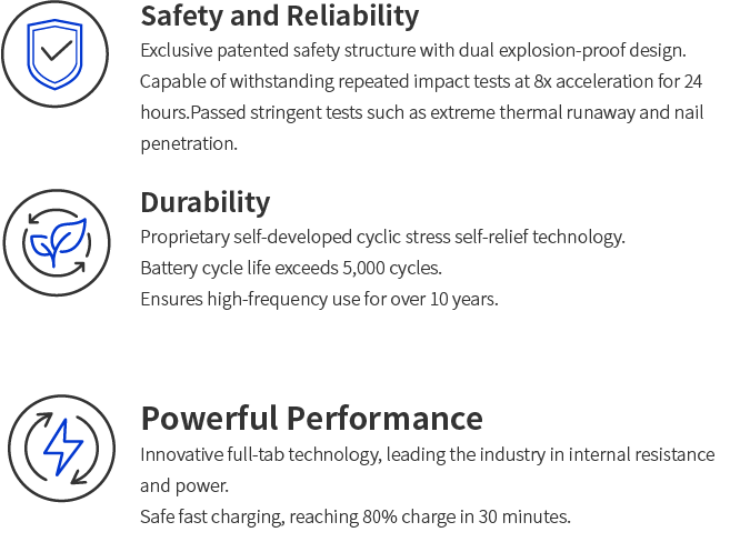 Great Power has 23 years of professional battery technology expertise. The HOME-II series of large cylindrical batteries is the culmination of five years of dedicated research into large cylindrical battery technology by Great Power. The products are mainly used in outdoor power supply, residential energy storage, two-wheeled vehicle, HEV hybrid system, 12V/48V starting power supply and other fields, committed to bring users a better life.